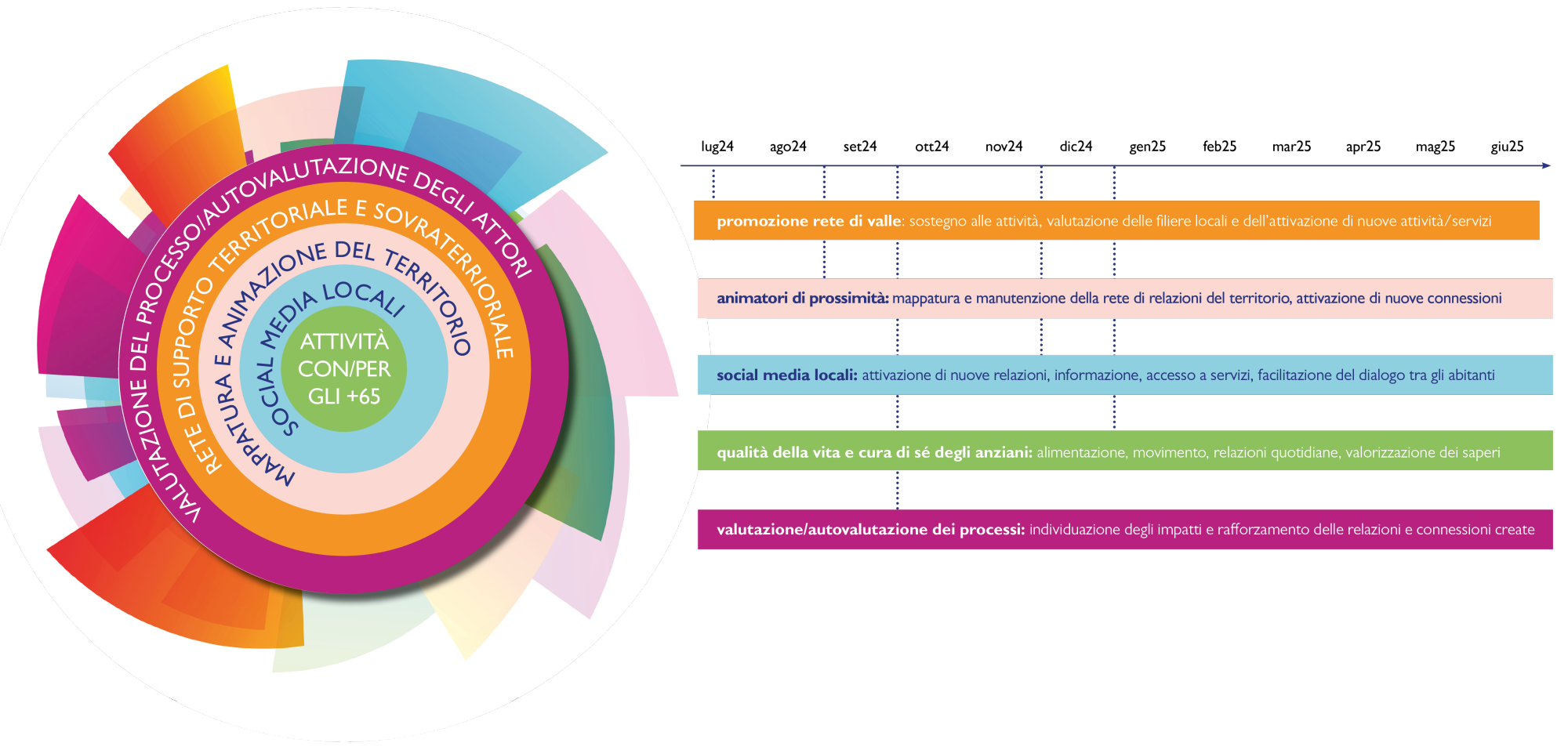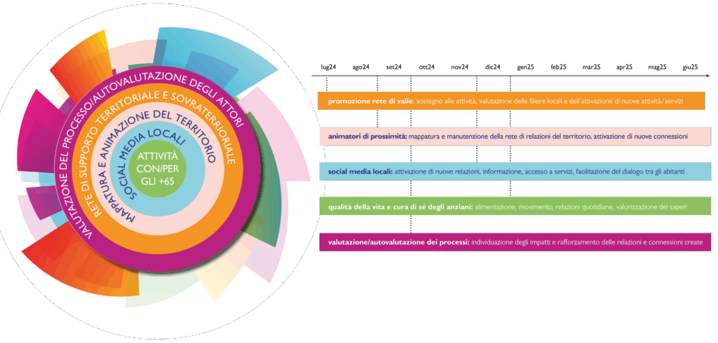 Gli animatori – formati al loro ruolo in un percorso di formazione-azione -hanno prima realizzato la ricerca su bisogni e risorse del territorio e poi seguito le attività per gli anziani e la creazione della mappa di comunità.